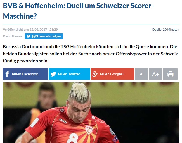 Futbollisti shqiptarë me origjinë nga Prilepi i Maqedonisë, Ezgjan Alioski, që aktualisht luan me Luganon në Superligën zvicerane, është pranë transferimit te skuadra e njogur gjermane, Borusia Dortmund.