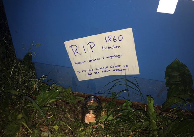 Disfata e sontshme ndaj Regensburgut nuk u mirëprit mirë nga ana e tifozëve të kësaj skuadre, të cilët detyruan arbitrin kryesor Daniel Zibert për të ndërprerë ndeshjen në minutën e 81-të, pasi në fushë u hodhën mjete piroteknike si dhe gjësende më të rënda, ndërsa gjithashtu një pjesë e tifozëve të Munih 1860 tentuan që të futeshin në teren.