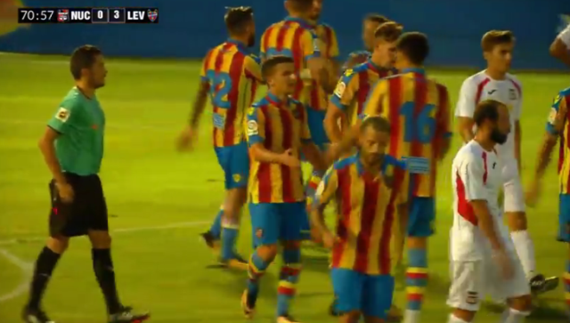| Formacioni i parë i Levantes: Raúl Fernández; Iván, Postigo, Saveljich, Toño; Morales, Campaña, Verza, Espinosa, Shaq; Roger. |