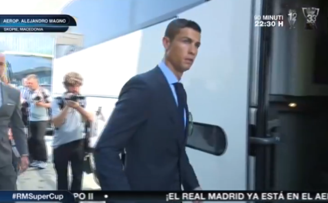Skuadra kampione në fuqi e Evropës, Reali i Madridit ka arritur në aeroportin “Aleksandri i Madh” në Shkup, për tu drejtuar më pas në hotelin “Aleksandar Pallas”, aty ku do të jenë të vendosur para ndeshjes së nesërme që do ta zhvillojnë ndaj Mançester Junajtedit, në kuadër të SuperKupës së Evropës.
