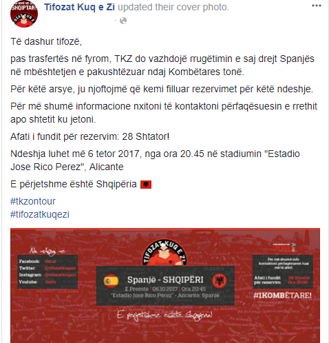 Një bojkotim i paralajmëruar, pasi ky grupim mungoi edhe në takimin e Shqipërisë ndaj Lihtenshtajnit me 02 shtator në “Elbasan Arena”, por ata ishin të pranishëm kundër Maqedonisë në Strumicë, ndërsa gjithashtu do të jenë në përkrahje të Kombëtares shqiptare edhe në ndeshjen e 06 tetorit kundër Spanjës në Alikante.