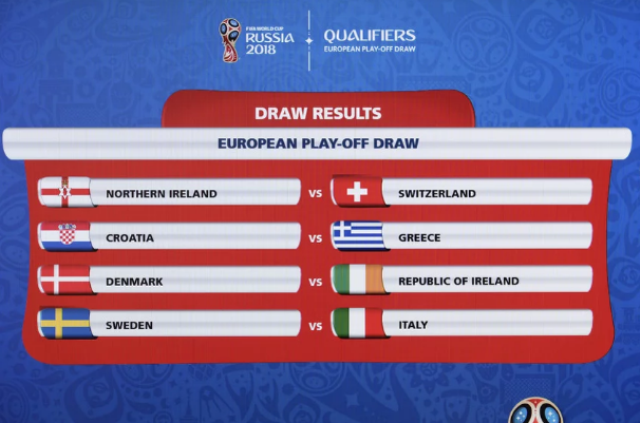 Italia e Venturas do të përballet me Suedinë, Danimarka për një vend në Botëror do të luftojë me Republikën e Irlandës, teksa Zvicra e 5 futbollistëve shqiptarë një gjë të tillë do të kërkojë të bëjë përmes eliminimit të Irlandës së Veriut.