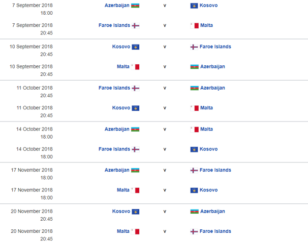 Ndeshja e parë për Kosovën do të jetë pikërisht transferta ndaj Azerbajxhanit, në datën 7 Shtator, ndërsa pikërisht ndaj kësaj kombëtare përfaqësuesja kosovare do të përmbyll këtë fushatë me 20 nëntor si vendas.