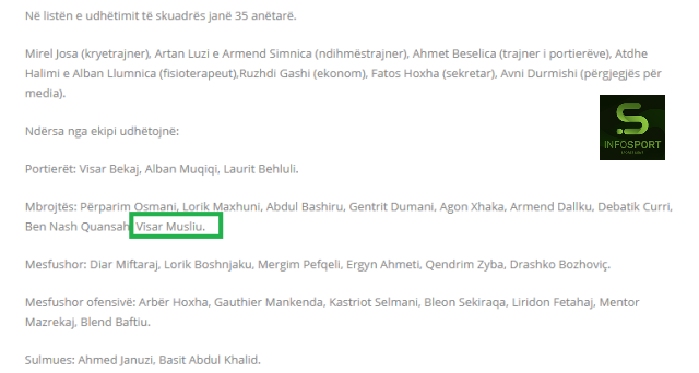 “infOSport.mk” tentoi të kontaktoj me drejtuesit e skuadrës kosovare, mirëpo deri në këto momente nuk morrëm asnjë përgjigje zyrtare, njëjtë sikurse nuk arritëm të marrim ndonjë prononcim edhe nga ana e vetë futbollistit, Visar Musliu. Gjithsesi “infOSport.mk” do ju informojë me kohë lidhur me këtë çështje, ku presim që orëve në vijim të kemi sa më shumë informacione nga e gjithë kjo “telenovelë” rreth mbrojtësit shqiptarë të përfaqësueses së Maqedonisë, që së fundmi ishte pjesë e kampionëve në fuqi të Vardarit.