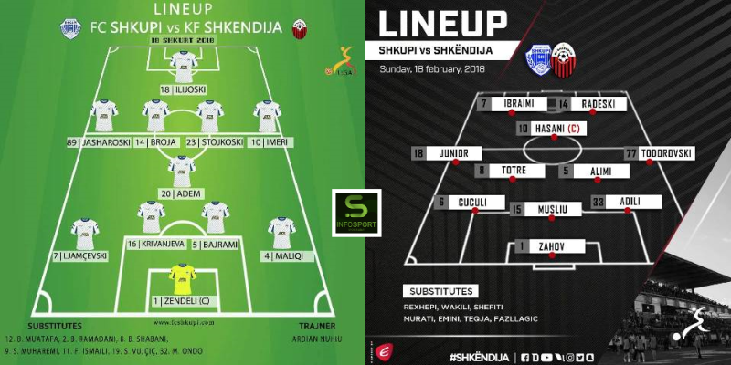Para pak çastesh trajneri i FC Shkupit, Ardian Nuhiu dhe ai i Shkëndijës, Qatip Osmani kanë zbuluar formacionet me të cilët do të zbresin në fushë në ndeshjen derbi të javës së 20-të në elitën e futbollit vendor, njofton “infOSport.mk”.