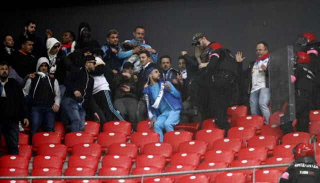 Dy polic spanjoll u plagosën, pasi ishin sulmuar nga tifozët francez me thika. Incidenti i parë ndodhi para fillimit të ndeshjes, kur polici 57-vjeçar kishte tentuar që të vendos rend gjatë hyrjes së tifozëve të Marsejës brenda në stadiumin “San Mamesh”, ndërsa njëri prej “ultrasve” kishte goditur atë me thikë. Për fat të mirë gjithçka kishte përfunduar mirë, pasi polici në fjalë me shpejtësi ishte dërguar në spitalin më të afërt, ku falë intervenimit të mjekëve gjendja e tij tashmë është stabile.
