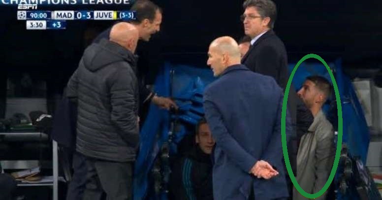 Kapiteni i “madrilienëve” ishte i skualifikuar për shkak kartonësh dhe e ndoqi ndeshjen nga tribunat e stadiumit, ndërsa në çastet e fundit të takimit kur Juventusi po avansonte me rezultatin 0:3, ai zbriti poshtë duke qëndruar pranë hyrjes për në korridorin e stadiumit, pak metra larg stolit të ekipit të Realit.