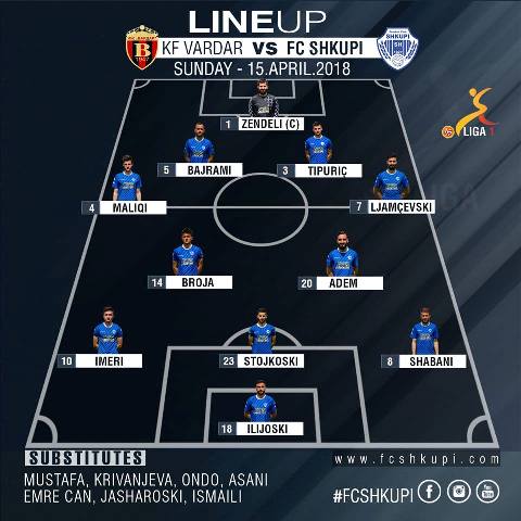 Formacioni i FC Shkupit ndaj Vardarit