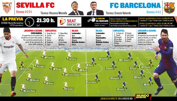 Ballafaqimi do të fillojë nga ora 21:30, ndërsa “Mundo Deportivo” ka publikuar formacionet e mundshme të dy skuadrave që do të diskutojnë trofeun e Kupës për sezonin 2017/2018.