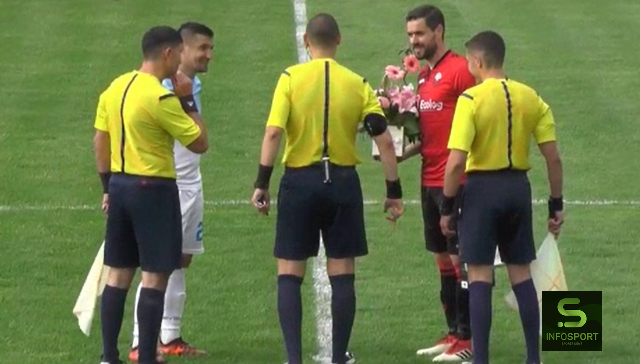 Para fillimit të ndeshjes nga tabori i Akademia Pandev i uruan Shkëndijës për titullin e kampionit. Me këtë rast kapiteni Zoran Baldovaliev me lule mirëpriti kapitenin e Shkëndijës, Ardian Cuculi.