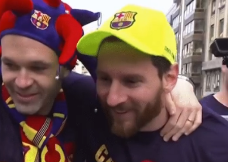 Një nga momentet më emocionuese të kësaj parade, ishte përqafimi i sinqertë mes Iniestas dhe Messit, dy nga protagonistët e shumë sukseseve të Barcelonës në dekadën e fundit.