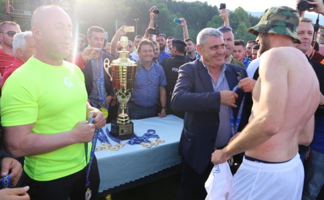 Medaljet për kampionët i shpërndanë presidenti i FFK-së, Fadil Vokrri, kryeministri, Ramush Hajradinaj, nënkryetari i FFK-së, Agim Ademi dhe sekretari i përgjithshëm, Eroll Salihu, derisa trofeun e kampionit kapitenit të Dritës, ia dorëzuan së bashku presidenti Vokrri dhe kryeministri i Kosovës, Haradinaj.