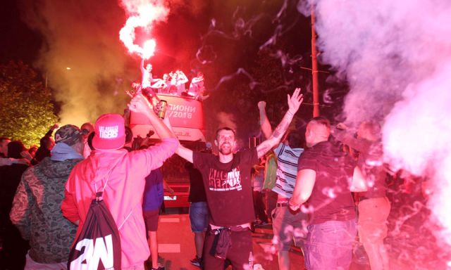 Derisa futbollistët po shëtisnin me autobusin e hapur rrugëve të Beogradit, disa flakadane që përdornin edhe vetë futbollistët e Crvena Zvezdës sipër në autobus bënë që një pjesë e tij të marrë flakën.