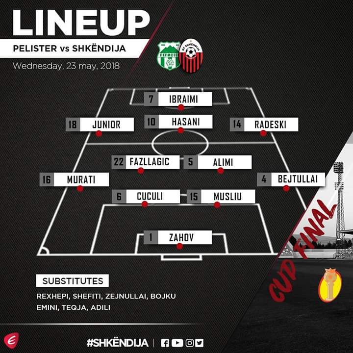 Më poshtë keni formacionin e Shkëndijës, i cili morri besimin e trajnerit Qatip Osmani, i cili do të tentojë që në Tetovë të sjellë edhe trofeun e dytë të këtij viti, pas atij të titullit kampion.