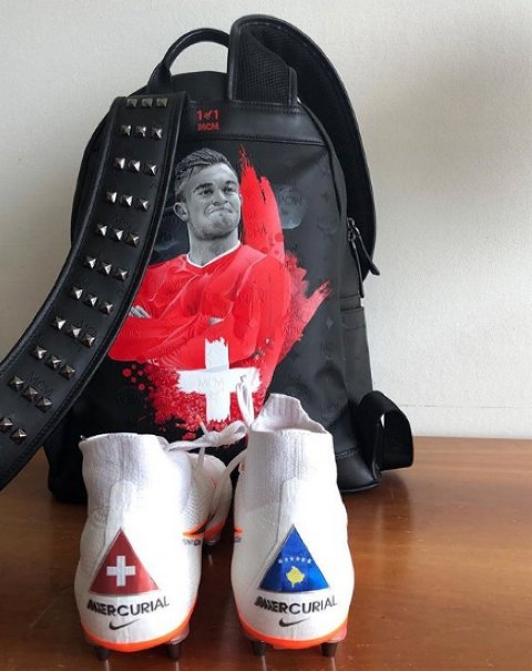 Përmes një fotografie në rrjete sociale, Shaqiri ka zbuluar se në thembrën e këmbës së djathtë do ta ketë flamurin e Kosovës, kurse në këmbën e majtë flamurin e Zvicrës.