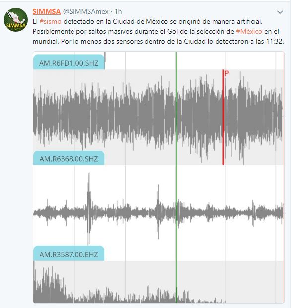 “Tërmeti i shkaktuar në Meksiko kishte origjinë artificiale. Me shumë mundësi për shkak të kërcimeve masive gjatë golit të kombëtares së Meksikës në Botëror. Të paktën dy sensorë të ndryshëm brenda kryeqytetit e sinjalizuan në orën 11:32 lokale”, shkruhej në njoftimin e bërë nga Instituti Sizmologjik.