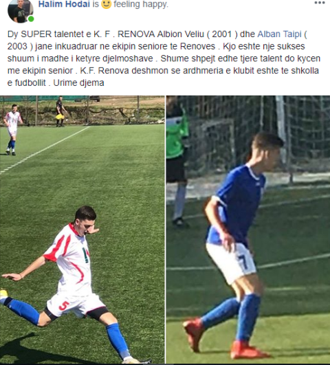 “Që të dy tashmë janë pjesë e ekipit të parë, ku po kryejnë stërvitjet nën udhëheqjen e trajnerit Jeton Beqiri. Për ne si trajner të grupomoshave të reja, pa dyshim se kjo përbënë kënaqësi, pasi puna jonë vlerësohet, ndërsa shpresojmë se edhe në të ardhmen do të punojmë në këtë drejtim që ekipin e parë ta ushqyejmë me futbollistë nga shkollat tona” – u shoreh ish futbollisti i Shkëndijës dhe FC Shkupit (ish Sloga Jugomagnagtit), Halim Hodai, i cili te Renova punon me gjeneratat 2001-2002 dhe 2004-2005.