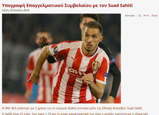 Suad Sahiti ka braktisur rradhët e Skënderbeut dhe karrierën e tij do ta vazhdojë në Greqi te skuadra e Larisa, njofton “infOSport.mk”.