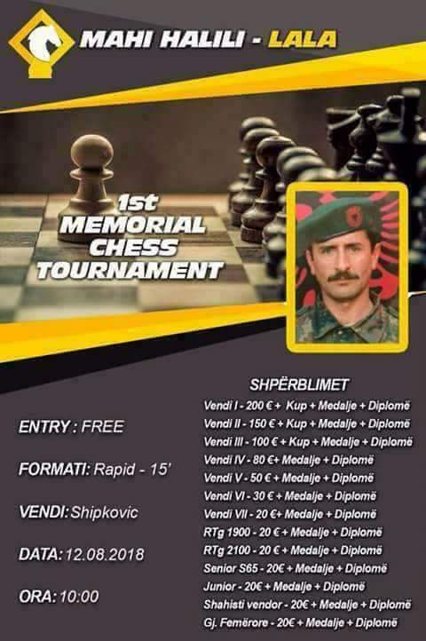 Në fshatin Shipkovicë të Tetovës me 12 gusht të këtij viti do të organizohet turneu i madh në shah për nder të Mahi Halilit ose komandant Lala.