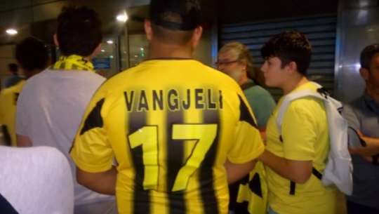 Ajo që binte më së tepërmi në sy është se një tifoz grek mbante veshur fanellën e mbrojtësit korçar Kristi Vangjeli, i cili u aktivizua për 9 sezone me skuadrën nga Selaniku.