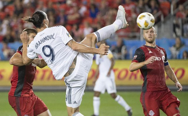 Super ylli i MLS ligës amerikane të futbollit, Zlatan Ibrahimoviç golin e tij të 500-të në karrierën e ka shënuar në mënyrë të veçantë. Gjigandi suedez me origjinë boshnjake shënoi një gol akrobatik, duke ngritur lartë këmbën e tijdhe me thembër të shënojë në rrjetën e kampionëve të Torontos.