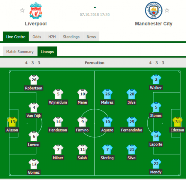 Formacionet zyrtare, Mançester Siti – Liverpull