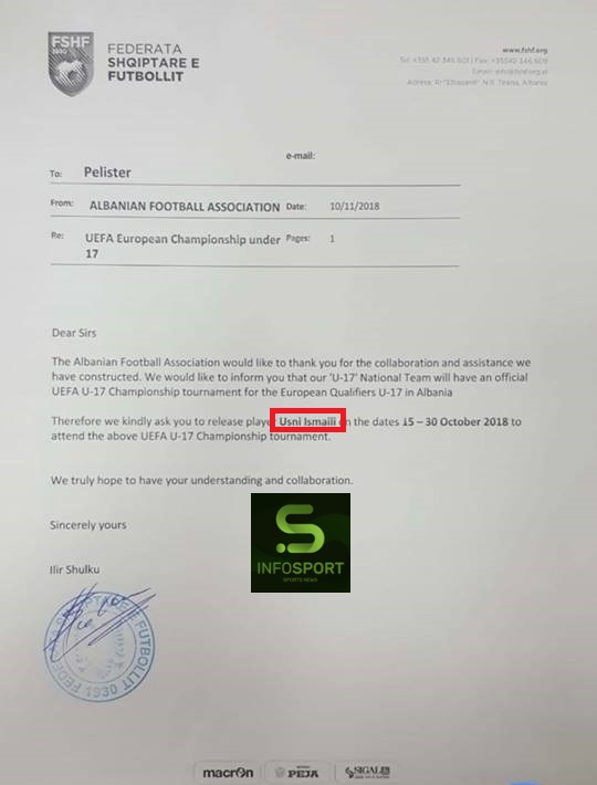 Sa i takon listës, ‘infOSport.mk’ mëson se Ysni Ismaili, mbrojtësi i djathtë i Pelisterit i lindur me 13 mars të vitit 2002 do të jetë pjesë e kësaj liste, ndërsa kjo ka bërë shumë krenar edhe vetë futbollistin shqiptarë nga qyteti i Alfabetit, i cili në një prononcim ekskluziv për portalin tonë, tha: ‘Jam shumë i lumtur që në adresën time erdhi ftesa nga ana e Kombëtares U17 të Shqipërisë. Është kjo një ëndërr për mua, pasi gjithnjë dëshira ime ka qenë që të mbroj ngjyrat ‘kuqezi’. Vlerësojë këtë ftesë nga ana e trajnerit Mustadanagiç, ndërsa e imja është që të jap më të mirën nga vetja dhe të arsyetojë këtë besim”.