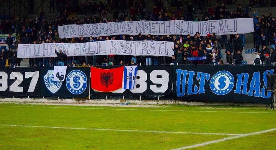 Ndërkohë më pas, tifozët vendas shfaqin edhe banderolën kushtuar humanistit të madh shqiptarë, Halil Kastrati. “Na bashkove rreth një ideali, ti o hoxhë HALIL KASTRATI”, shkruhej në banderolën e “Shvercerave”, të cilët edhe brohoritnin emrin e humanistit. /InfOSport.mk
