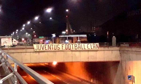 Pankarta e bardhë me shkronja të zeza u paraqit në Korso Groseto në Torino, në afërsi të stadiumit të Juventusit, ‘Alianc Stadium’.