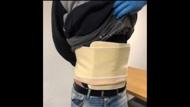 Një ekzaminim i afërt zbuloi se ai kishte mbështjellë rreth trupit rreth dy kilogram heroinë, me të cilën po hynte në Zvicër.
