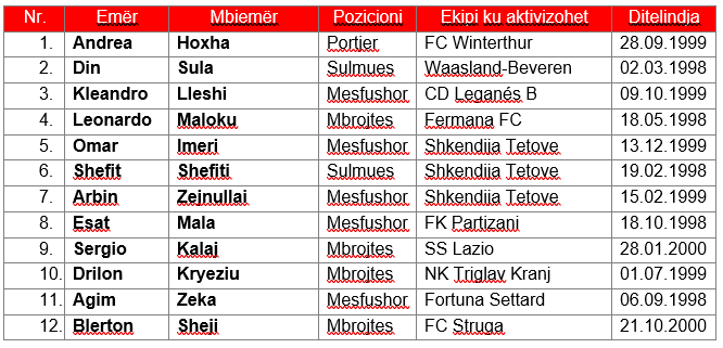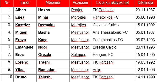 Që të tre janë pjesë e 12-të futbollistëve, njëjtë sikurse edhe ata 10-të të Kombëtares A të Shqipërisë, e që tashmë kanë përfunduar sezonin dhe janë grumbulluar nga trajneri Bushi për ndeshjen zyrtare me Turqinë dhe dy miqësoret që do të zhvillojnë në Shqipëri me Uellsin.