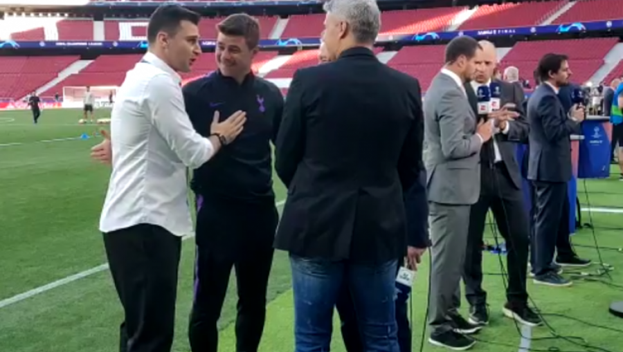 Lorik Cana në “Vanda Metropolitano” takim miqësor me trajnerin e Totenhemit Poketino gjatë stërvitjes zyrtare. Cana do të jetë komentues i ndeshjes finale të Ligës së Kampionëve ndërmjet Totenhemit dhe Liverpulit në kanalin “Tring”.