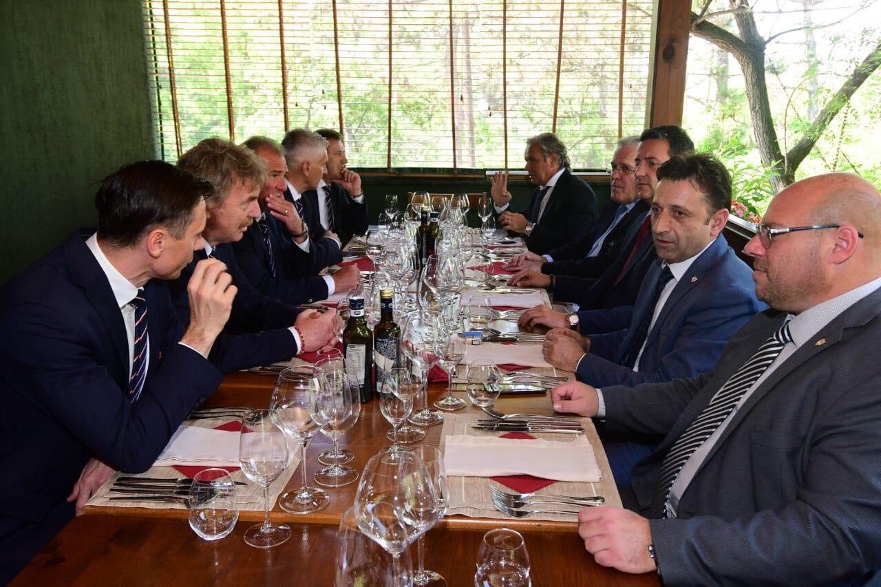 Në vigjilie të përballjes eliminatore për EURO 2020 Maqedoni-Poloni që do të zhvillohet sonte në Shkupi, presidenti i Federatës së Futbollit të Maqedonisë Muamed Sejdini në një drekë të përbashkët ka pritur homologun e tij polak Zbigniev Boniek.