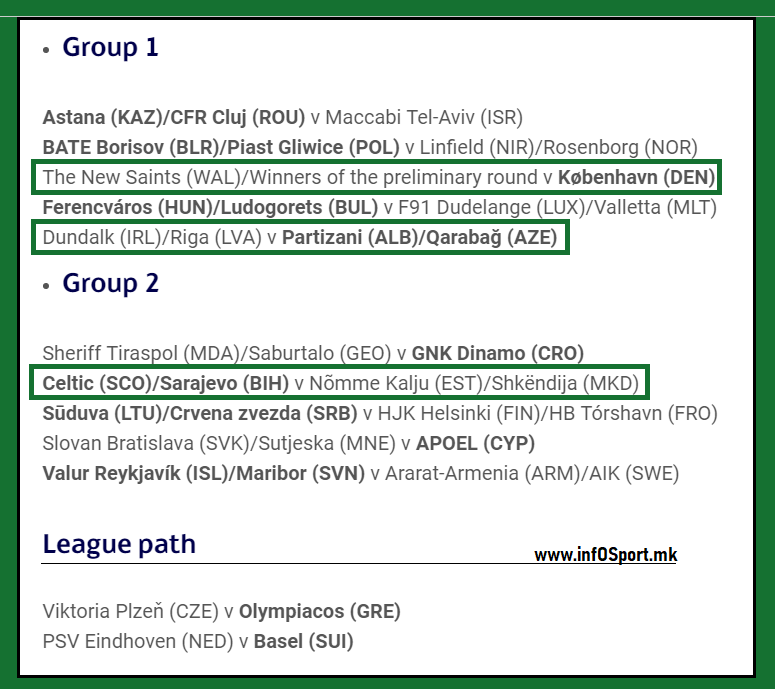 Pas Shkëndijës, emrat e kundërshtarëve eventual për turin e dytë eliminatorë të Ligës së Kampionëve i kanë mësuar edhe dy skuadrat tjera shqiptare, kampionja e Shqipërisë, Partizani dhe ai i Kosovës, Feronikeli, njofton “infOSport.mk”.