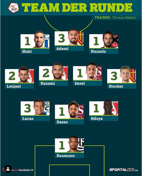 Kësisoj formacioni i javës në elitën e futbollit zviceran është pushtuar nga shqiptarët, pasi katër futbollistët e lartpërmendur kanë zënë vend në 11-shen e javës.