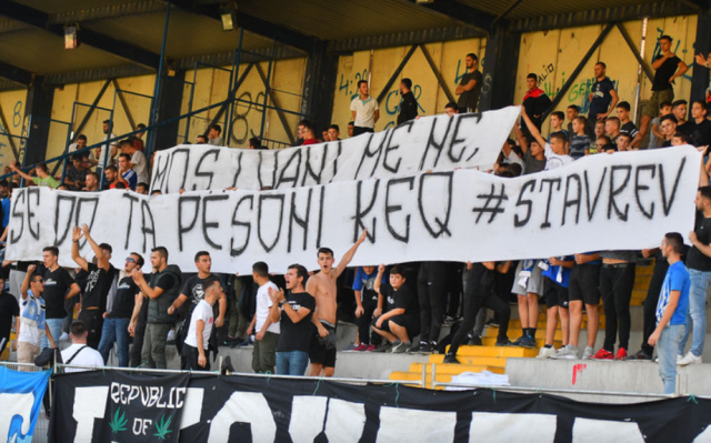 “Mos luani me ne, se do ta pësoni keq – Stavrev” – qëndronte në pankartën e shpalosur nga ana e tifozëve të FC Shkupit, të cilët sot iu gëzuan fitores së madhe të skuadrës së tyre ndaj kampionëve në fuqi të Shkëndijës.