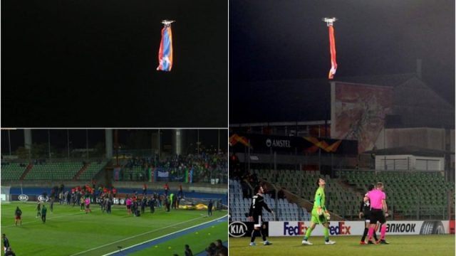 Një ngjarje e ngjashme me atë që kishte ndodhur vite më parë në Beograd, në ndeshjen midis Serbisë dhe Shqipërisë, ka ndodhur sont edhe në ndeshjet e Liga Europa, shkruan “infOSport.mk”.