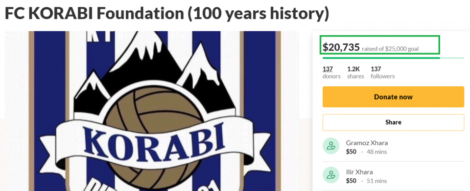 Kjo inciativë e qytetarëve dibran dhe grupit të tifozëve “Sokolat” vazhdon edhe më tej, ndërsa shuma e parave të grumbulluara tashmë ka arritur shumën e 25 mijë dollarëve.