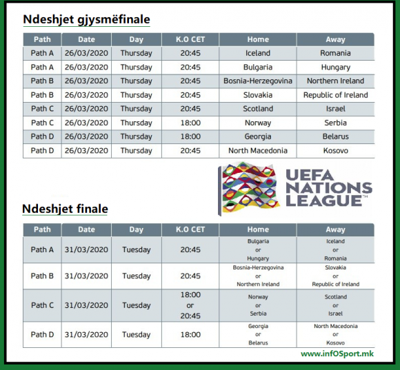 Me 31 mars, kur në program do të jenë ndeshjet finale, fituesi nga dueli midis Maqedonisë së Veriut dhe Kosovës do të udhëtojë për në Tbilisi apo Minsk. Ndeshja finale e ligës “D” do të startonte në ora 18:00.