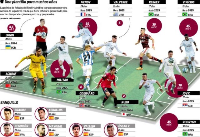 Në formacion kanë zënë vend disa prej talentëve aktual të Real Madridit por të bashkuar me objektivat e mëdhenj të zyrtarëve të klubit për transferim në “Santiago Bernabeu”.