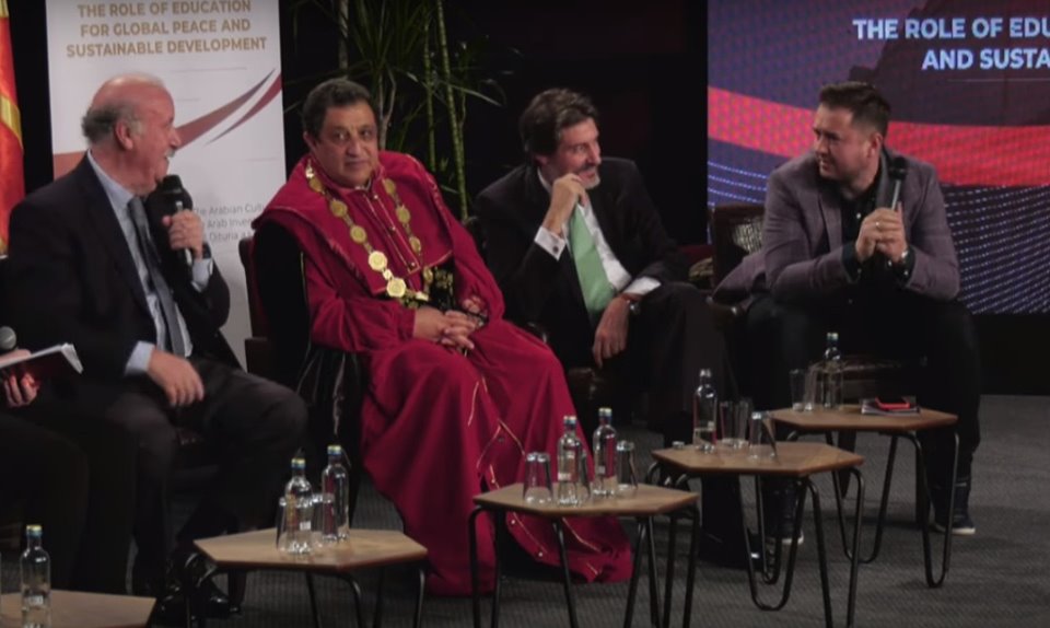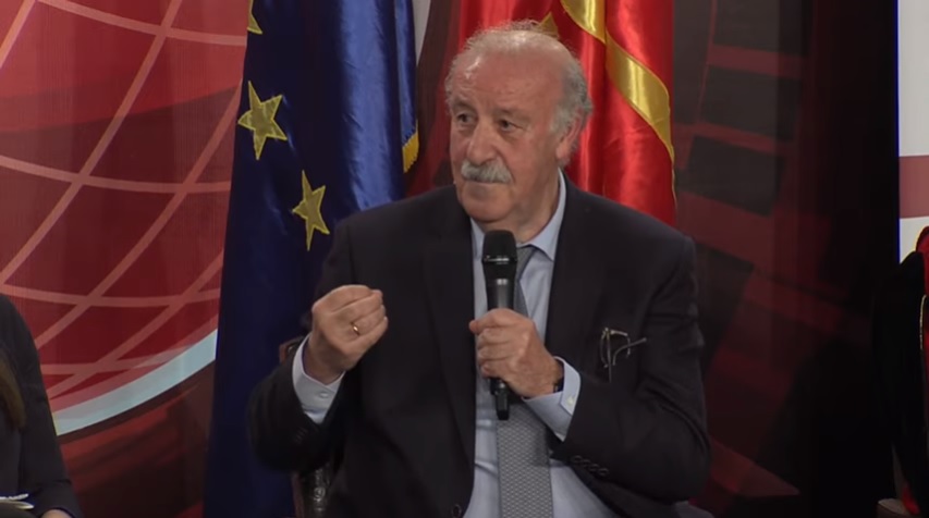 Del Bosque qëndroi sot në Shkup në Universitetin FON duke mbajtur ligjerata në lidhje me karrierën dhe përvojat e tij në ngjarjen e organizuar në bashkëpunim të Universitetit dhe Agjencionit për Rini dhe Sport.