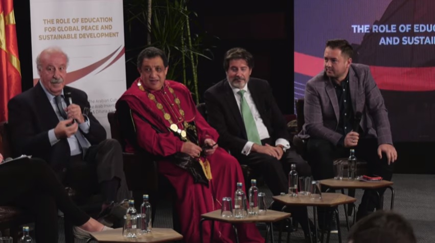 Del Bosque qëndroi sot në Shkup në Universitetin FON duke mbajtur ligjerata në lidhje me karrierën dhe përvojat e tij në ngjarjen e organizuar në bashkëpunim të Universitetit dhe Agjencionit për Rini dhe Sport.