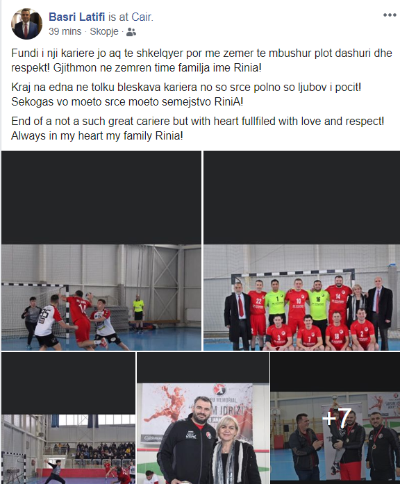 Një gjë të tillë Latifi kishte bërë të ditur përmes profilit të tij zyrtarë në facebook, e ku ndër të tjerash kishte shkruar: “Fundi i një karriere jo aq të shkëlqyer por me zemër të mbushur plot dashuri dhe respekt! Gjithmonë në zemrën time familja ime Rinia!”.
