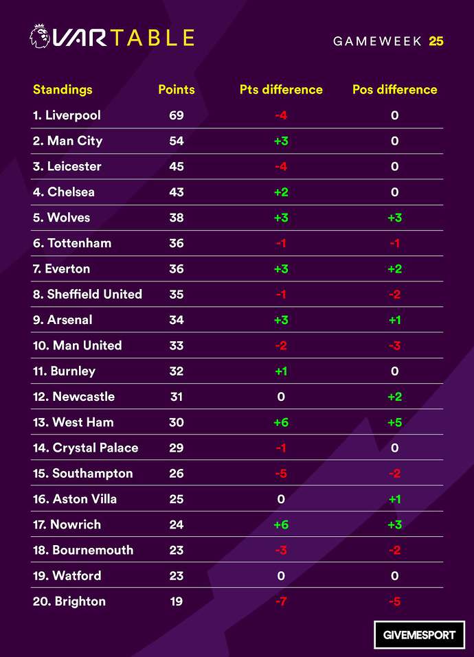 Nëse teknologjia nuk do të përdorej në Premierligën angleze në këtë sezon, tabela do të dukej më ndryshe, derisa disa skuadra do të renditeshin më ndryshe nga tabela aktuale, ku Liverpulli po dominon pa shumë probleme.