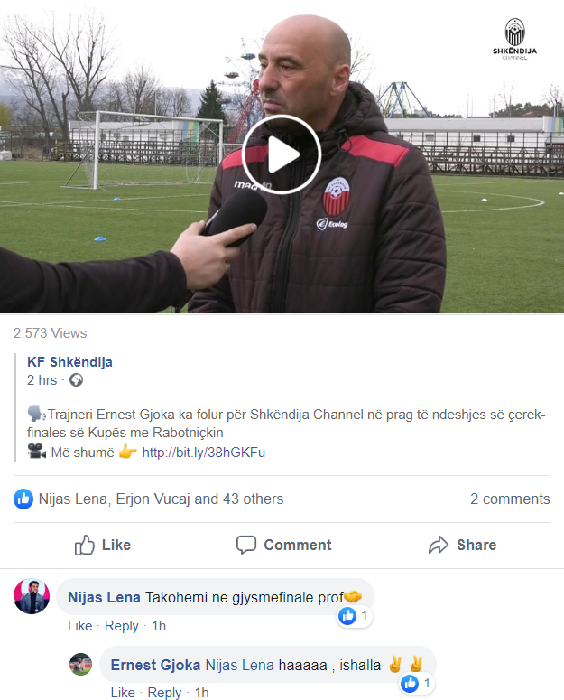 Lena në një koment të bërë në faqen zyrtare të Shkëndijës në “facebook”, i kishte shkruar Gjokës: “Takohemi në gjysmëfinale prof”, ndërsa gjithë këtë strategu “kuqezi” e kishte pranuar me shumë sportivitet dhe kënaqësi, duke i’a kthyer me një të qeshur: “Nijas Lena haaaa, ishalla”.