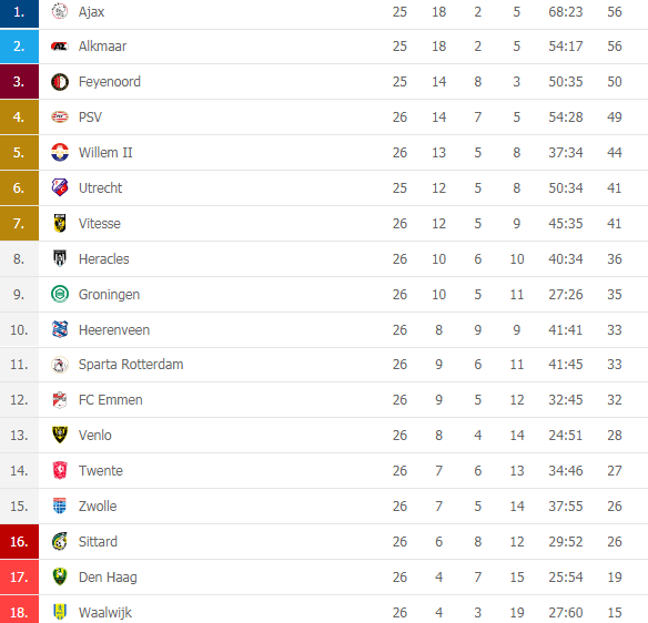 Kjo i shkon për shtati dy skuadrave të fundit në elitën e futbollit holandez, ADO Den Haag dhe RKC Walwijk do të mbesin në elitë, ndonëse është pritur të largohen nga “Eredivisie”.