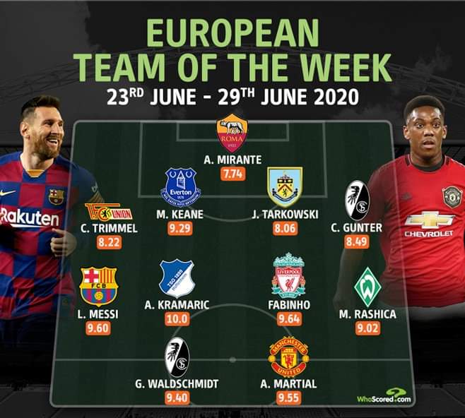 Agjencia e njohur e statistikave, ‘WhoScored’ ka publikuar formacionin a javës në Evropë, e që ka të bëjë me ndeshjet e zhvilluara nga data 23, deri me 29 qershor.