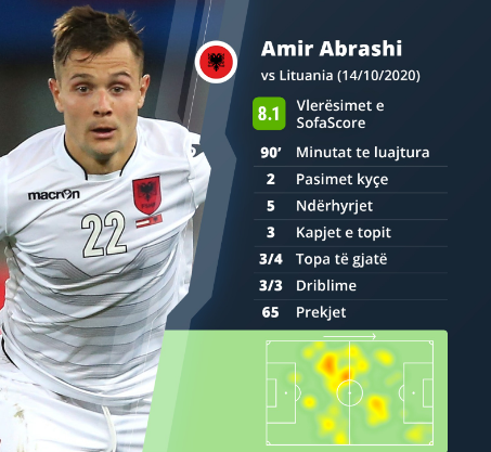 Më poshtë keni statistikat e Amir Abrashit ndaj Lituanisë sipas “Sofa Score”: