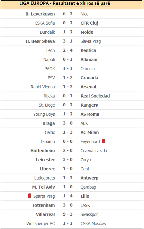 Në po të njëjtin grup, grupin “H”, skuadra franeze e Lille, ishte edhe më bindëse, duke mundur në transfertë Sparta Pragën (1:4).
