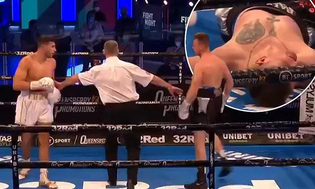 Tomi Fjurit i mjaftuan katër goditje për t’a hedhur në tokë kundërshtarin, i cili më pas kërkoi dhe ndihmë e stafit mjekësor për të marrë veten.
